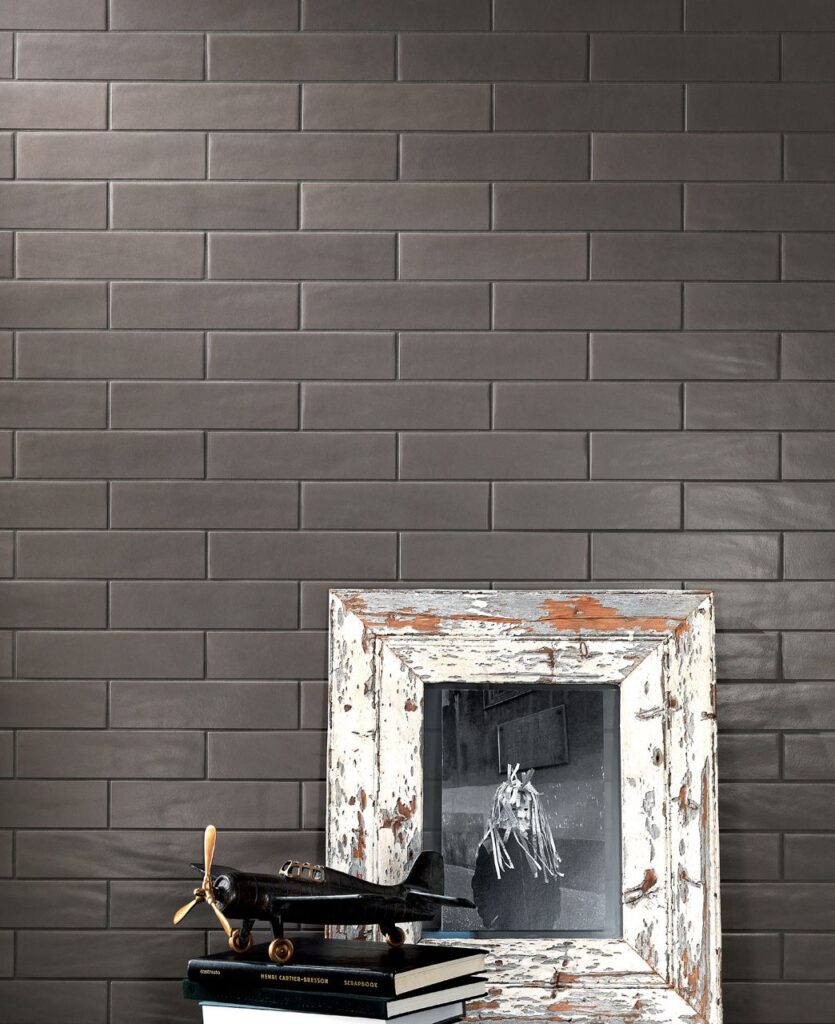Sleek Matt/Satin subway, contemporary grey colour. Flexible application use as it is a porcelain tile.